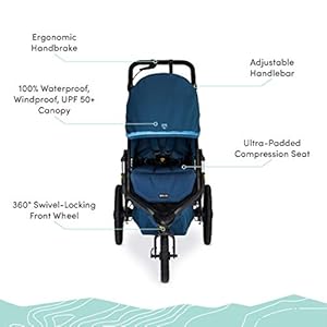 Adventure calling your name? The BOB alterrain Pro jogging stroller is ready to hit the ground running. With smoothshox suspension and air-filled tires, you and your little explorer can take on any terrain. Plus, the ergonomic handbrake puts incredible downhill control at your fingertips. The sleek, sturdy frame and reflective rims turn heads on the hiking trail or city street. And the all-weather canopy is 100% waterproof, wind-proof and rated UPF 50+ to shield your child from the elements. The Compression seat with infinite recline sits fully upright for all-day excursions, and lays near-flat for nap time. There’s plenty of room to store and secure all your gear in the zip-top cargo basket and five extra storage pockets. When your epic outing comes to an end, fold the stroller fast with a single twist of the hand. It stands up on its own until you’re ready to roll.