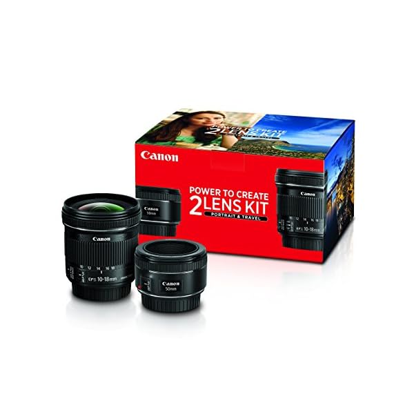 The Canon Portrait & Travel 2 Lens Kit includes the EF 50mm f/1.8 STM and EF-S10-18mm F4.5-5.6 IS STM.A stepping motor (STM) and newly-designed focus mechanism support the Canon EOS Movie Servo AF function to provide smooth and quiet continuous AF during video recording, as well as when shooting photos.