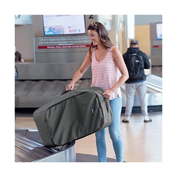 Durable, water-resistant fabric, sturdy double zippers and a reinforced rubberized base protect the bag and car seat from travel wear and tear