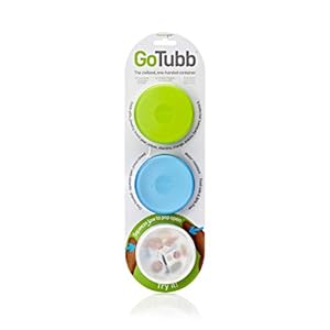 GoTubb is the ingenious, one-handed hard container. The GoTubb’s design allows you to open and close it with only one hand. Just squeeze the sides and the lid is released. To close, simply press back on. For everything that you can’t squeeze out of a GoToob, there’s GoTubb. GoTubb works great with pills, knick-knacks, snacks, vitamins, change, bits-n-piece, you name it. A recessed, textured labeling area resists being rubbed off, and the transparent tops let you see what’s inside without opening them. The small .9 cu. in. (14cc) size is perfect for a few pills, a stack of quarters, or two sets of ear plugs. The medium 5.3 cu. in. (86cc) size is great for holding a bit more of almost anything. Both GoTubb sizes come in convenient three-packs of clear, blue, and green; or clear, red, and orange. GoTubbs are food-safe (FDA) and completely recyclable (#5 plastic). They’re 100% BPA-free, PC-free, and phthalate-free. Like all of our products..