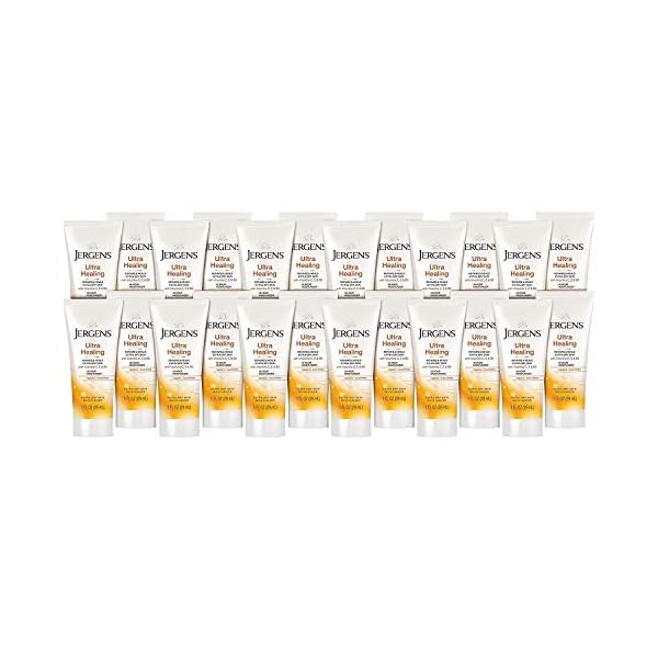 Leave one lotion in each room to make sure the whole household is covered or take one with you on the go. Repair dryness at the source with Jergens Ultra Healing Moisturizer for Extra Dry Skin. The nourishing formula penetrates through five layers of skin to heal extra dry skin, improve tone and texture, and leave it smooth and visibly healthier. The formula absorbs to soften areas that tend to need the most moisture like heels, elbows, and knees. This body moisturizer, with a unique Hydralucence blend of ingredients plus Vitamins C, E, and B5, leaves your skin luminous and moisturized for up to 48 hours. Jergens travel sized hand lotion makes for the perfect on-the-go cracked hands relief. Jergens hand and body lotion for women and men is carefully formulated for optimal dry skin relief. This Kao USA body cream for women and men soothes skin for long lasting hydration. Satisfaction Guaranteed. Limitations may apply.