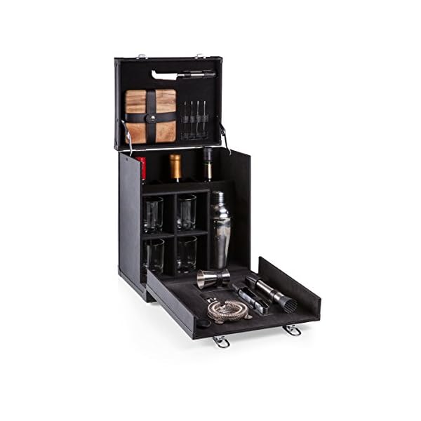From the Roaring 20s to the 2020s, the Hamilton Portable Cocktail Bar by LEGACY – a Picnic Time brand brings all that jazz back to happy hour with cocktail service for four. This complete portable bartender set is reminiscent of a vintage suitcase with its ballistic nylon and leatherette-accented exterior and fully-insulated interior lined in black velveteen. It tastefully showcases your three favorite wine or liquor bottles in padded compartments, and the stainless steel cocktail tools that are included: four cocktail sticks, four lowball glasses, a strainer, tongs, stirrer, muddler with plastic head, double-sided jigger, shaker, paring knife, and an acacia wood cutting board. This travel bar set is a handsome fixture on your home bar, or take your inner mixologist on the road, to the picnic, or on the train. Wherever you go, you’ll be fabulous, dahling! Case measures 14 by 10-1/2 by 10-1/4 inches, and makes a fabulous gift! We believe that our products should be strong, reliable, and work the way they were intended. That’s why we are proud to offer the BUILT TO LAST Lifetime replacement pledge. If for any reason our product fails to perform as promised, Picnic Time Family of Brands will repair or replace your item without hassle- FOR LIFE.