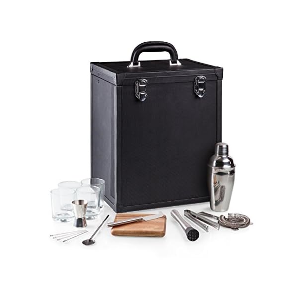 Gorgeous bartender’s set includes a handsome case and all the essential bar tools, plus 4 DOF glasses and 4 cocktail picks