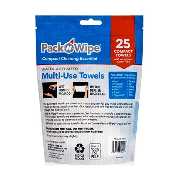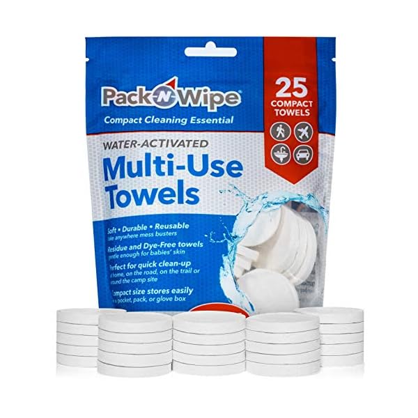 Pack-n-Wipe Compressed Disposable Towels – Soft, Durable, Reusable – Travel, Home, Outdoor Hand Towels – 8.5” x 11” – 25…