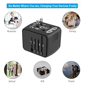 [International Compatibility]: 5 in 1 International Power Adapter, 1 USB-C port and 3xUSB ports and 1 Universal AC Socket, enough to simultaneously charge 5 devices. Perfect Power Charging Solution for your worldwide traveling. It Covers over 150 countries like USA,Canada,Mexico,Germany,Japan, China,Korea,Brazil,Europe, Asia, the Middle East,Etc.