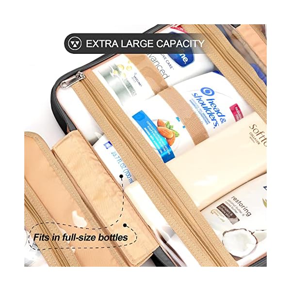 COOSKY Travel Hanging Toiletry Bag for Women, Holds Full-Size Shampoo, with Jewelry Organizer Compartment, Extra Large…