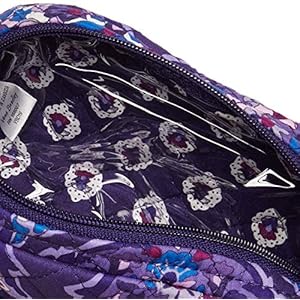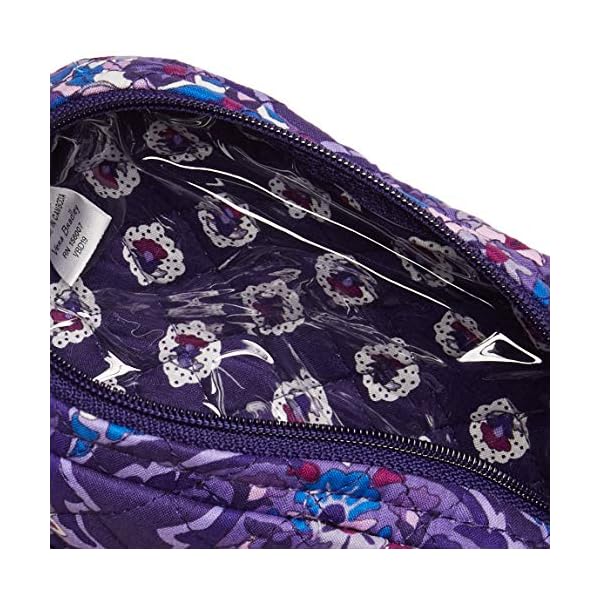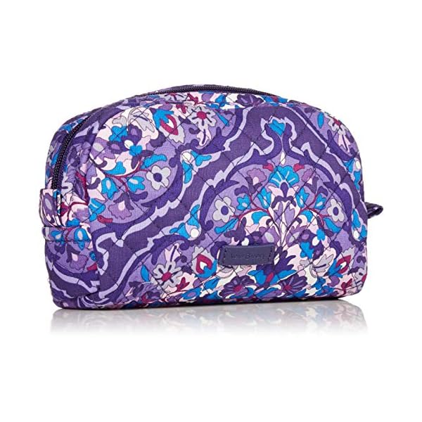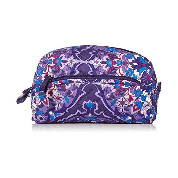 Signature cotton is colorful and lightweight. Front zip pocket. Main compartment is PVC lined. Zip closures. Spot clean with mild detergent and a soft, damp cloth, rinse thoroughly; lay flat to dry. Vera Bradley make up bags will perform as a travel makeup bag, an at-home makeup organizer or makeup storage, a makeup bag for purse, and you can buy a few to create your own makeup bag set!
